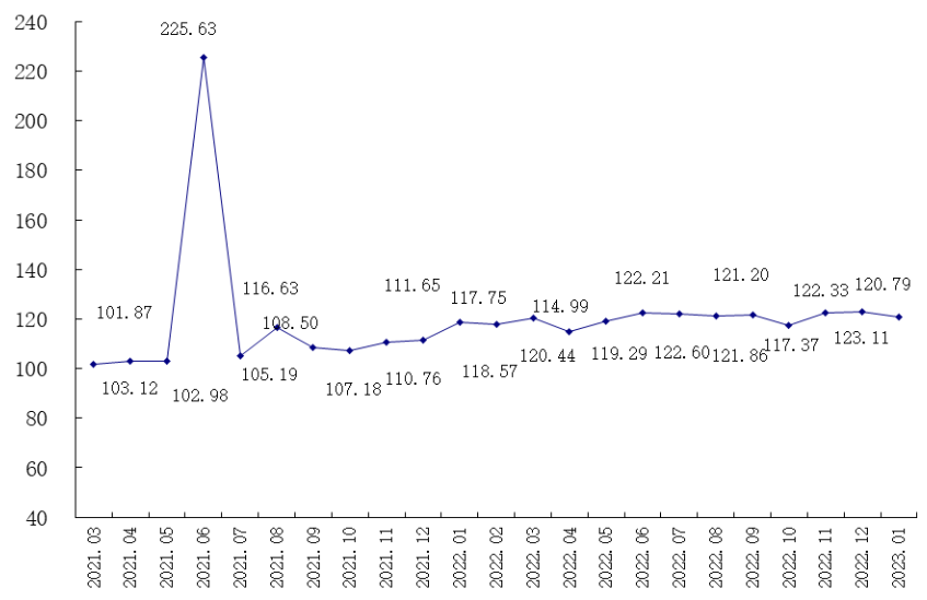 3、2023年2月的泵业区域价格指数来看,华东地区居于各区域之首,东北区最低。从环比来看,大部分地区的泵业区域价格指数呈现上升态势。